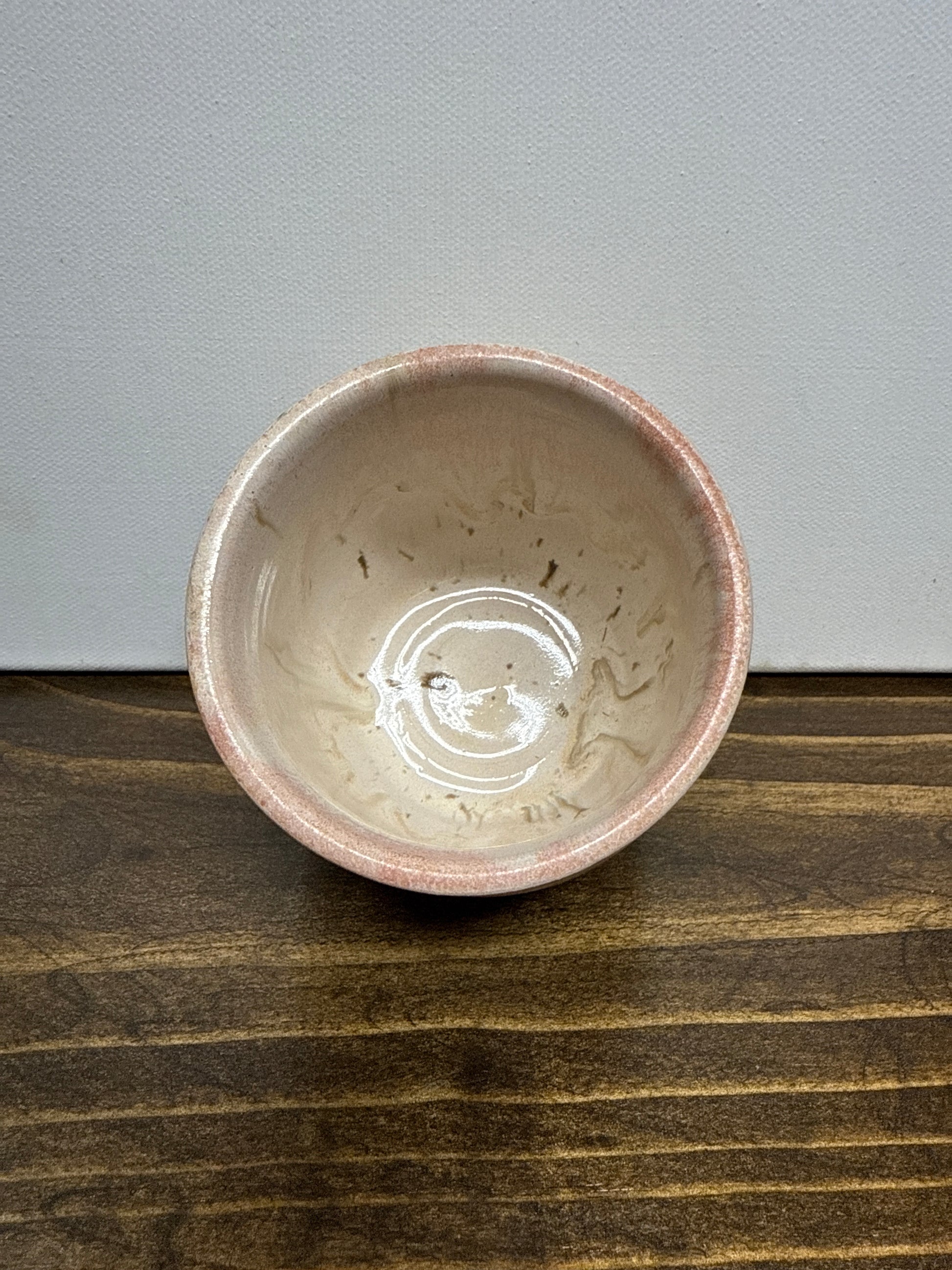 Beautiful tumbler that is perfect for a small candle or treasure holder. An adorable addition to your decor. The soft pink glaze drips down into the creamy white glaze, creating a soft look.